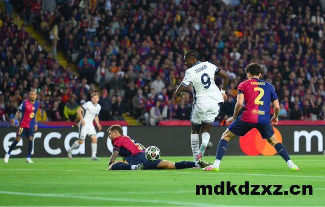 比赛哨响之后,国米并未如预想中的回收后撤,而是主动出击,与巴萨打起了对攻。此举大大出乎巴萨意料,哨音未落,国米便进球了——邓弗里斯突破到右侧后连续传中,图拉姆门前潇洒的脚后跟破门,打破僵局。