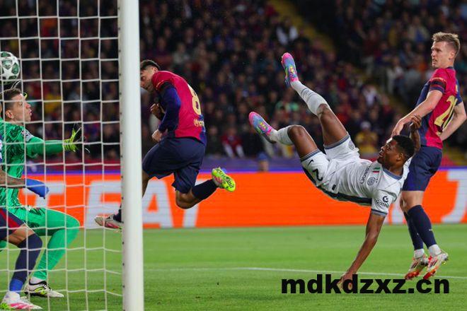 国米取得梦幻开局,也成功打乱了巴萨的节奏。20分钟后,国米卷土重来,邓弗里斯在角球混战中侧身凌空倒钩射门,什琴斯尼根本来不及作出反应,皮球脆声入网。