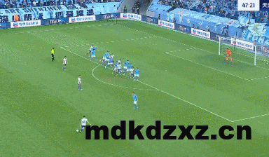 下半场,第47分钟,津门虎右路定位球开到禁区后点无人接应出底线。↓