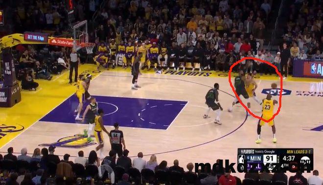 在比赛还剩下4分多钟的时间里,湖人仅落后三分,东契奇面对戈贝尔的防守,他原本利用脚步拉开空间,但是却犹犹豫豫不敢出手,随后将球传给詹姆斯,但是詹姆斯看到戈贝尔扑过来的时候,又将球反传给东契奇,最后东契奇打铁。
