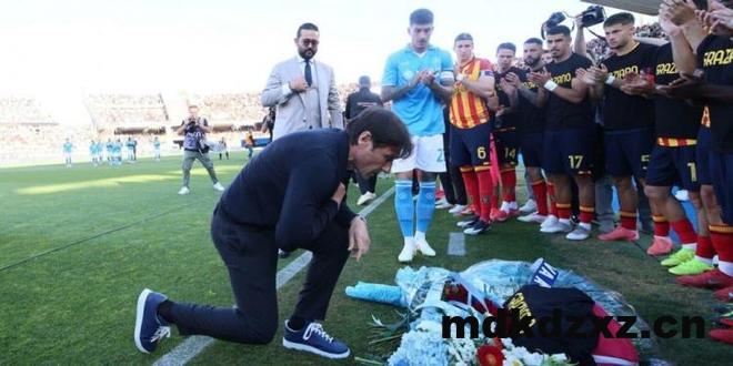 直播吧5月4日讯 在本轮意甲联赛前,那不勒斯主帅孔蒂为上周去世的莱切理疗师献花,并单膝下跪悼念对方。