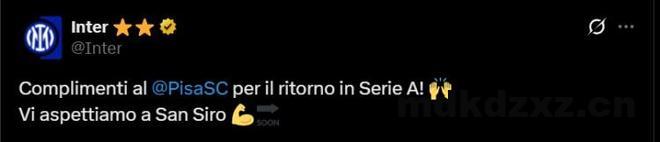 直播吧5月4日讯 在本轮意乙联赛,比萨0-1不敌巴里,但是由于竞争对手失分,球队提前两轮确定升入意甲。 国米官推也发文祝贺比萨,写道:“恭喜比萨重返意甲,我们会在主场等待与你们的比赛。” leyu.乐鱼新闻中心 leyu.乐鱼(集团)智能科技股份有限公司网站新闻中心 亚马尔已抵达巴萨办公室,准备与球队签署续约合同 WhoScored评本赛季五大联赛最佳阵:凯恩、姆巴佩&登贝莱领衔锋线
