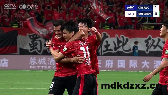 上半场一开场,成都蓉城便很快占据场面上的优势,多名球员狂轰乱炸让浙江队禁区混乱不已,但赵博接连的神勇扑救让浙江队避免过早丢球。第33分钟,杨明洋禁区外施射,皮球打在防守球员身上后变向,最终弹进球门,成都蓉城打破僵局。