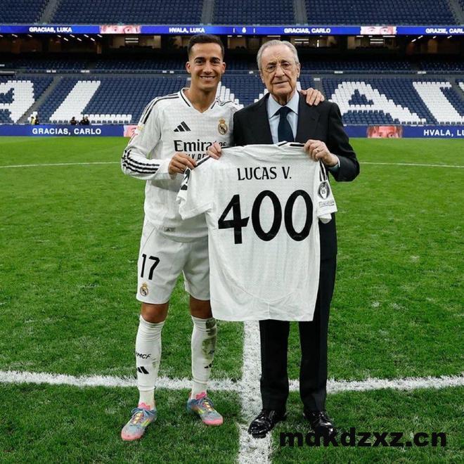 雷速体育5月25日讯 西甲第38轮,皇马主场2-0击败皇家社会。赛后,巴斯克斯领取皇马400场纪念球衣。