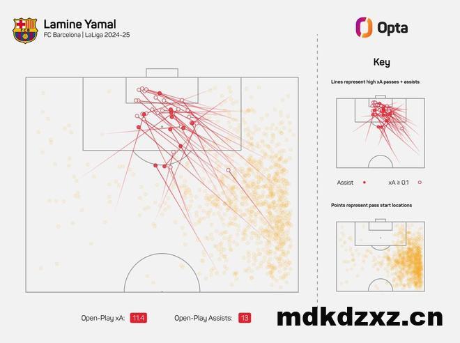据统计,亚马尔是本赛季西甲助攻次数最多的球员,他也是21世纪西甲单赛季助攻次数最多的20岁以下球员。
