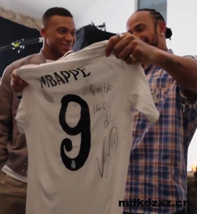 为宣传刚刚发售的《F1 25》,二人在赛车游戏中展开了对决。此外,姆巴佩还赠送给汉密尔顿一件亲笔签名的皇马9号球衣。